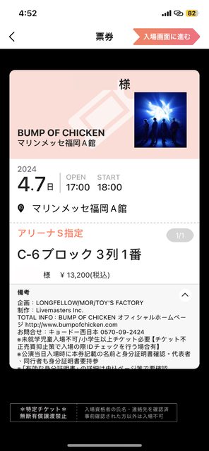 4/7 福岡 BUMP OF CHICKEN 的演唱會才有這次行程,