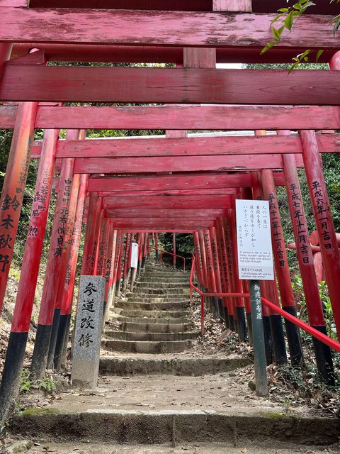 牆上告示建議大家可以每天來環山參拜、有助身心健康,於是跟著鳥居向上走,