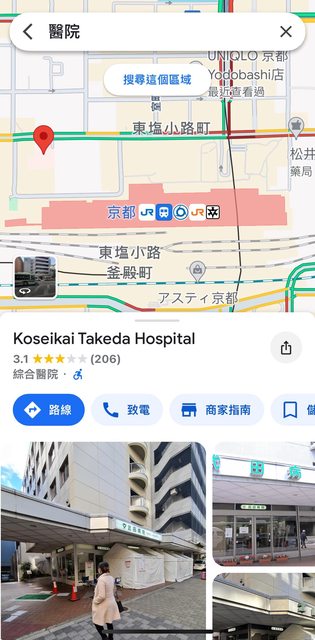 最後分享一下在京都,真的痛起來時要看的醫院。