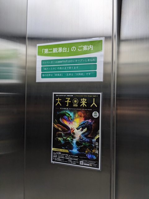 搭乘免費電梯前往第二觀瀑台 只有兩台電梯一上一下 人多的時候需要排隊
