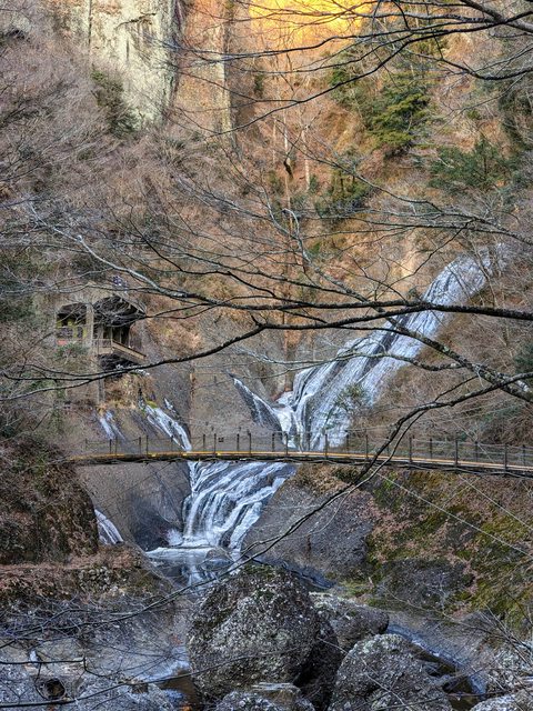 袋田瀑布有兩個入口處 看要不要過橋都可以 兩邊也各有一些商店