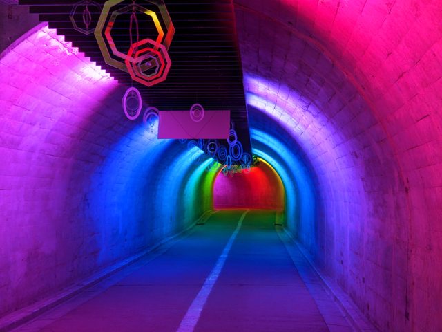 這時候剛好有隧道內的光影秀 門票300円 燈光會不斷變動 但覺得效果還好有點暈