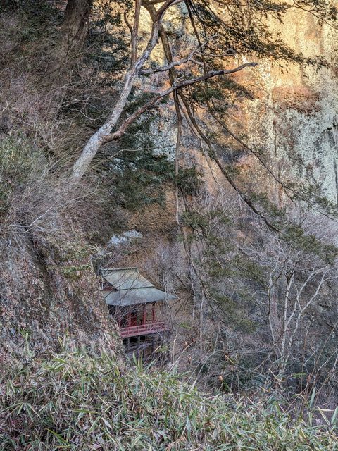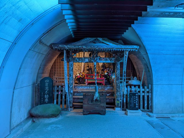 隧道內的四度瀧不動尊 峭壁旁的奧之院