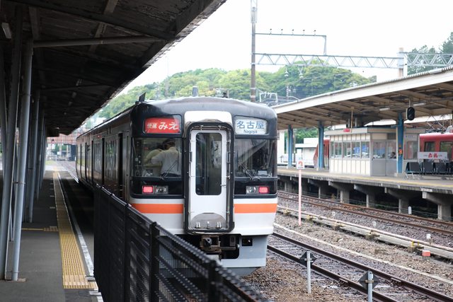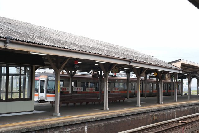 搭電梯上下空橋走到JR側的車站,看到了在近鐵輾壓區間努力奔走的快速みえ