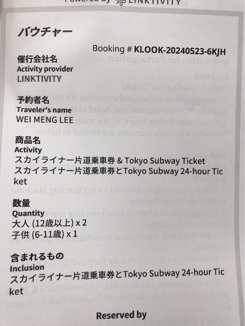 標題[讓售] Klook Skyliner京成電鐵車票&東京地鐵24H