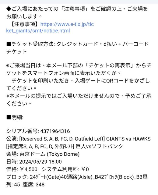 標題[讓售] 0529東京巨蛋 巨人軟銀內野門票휱