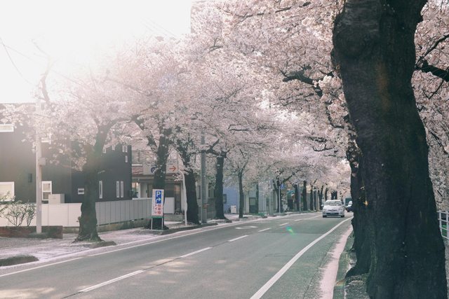 二公里的櫻花並木,開車經過時真的很浪漫..