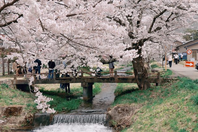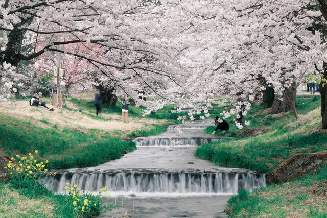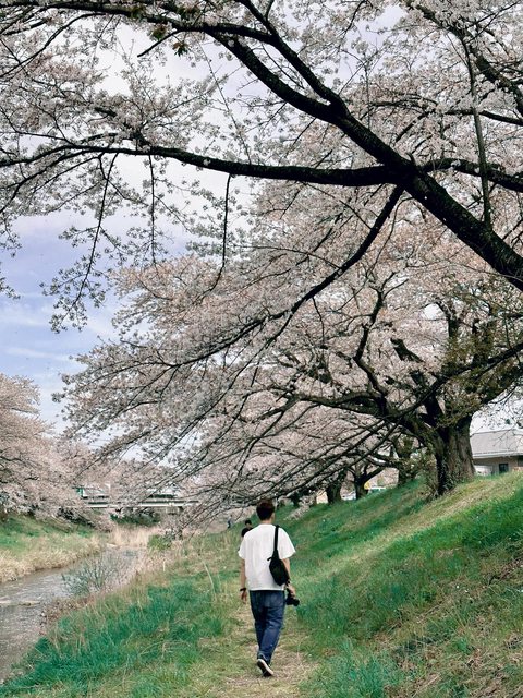 兩排的櫻花種的又密又茂盛,配上潺潺的流水聲,真是視覺跟聽覺的一大盛宴