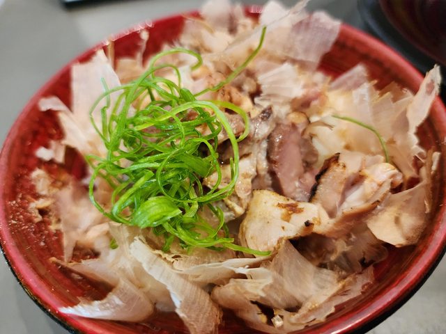 這個叉燒飯是用碎肉,應該是邊角肉去做的,但肉放的不多,卻放了一堆柴魚片充份量。
