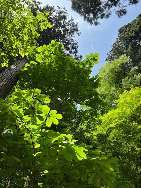 今天天氣很好,在燦爛陽光照射下,樹木更顯翠綠。