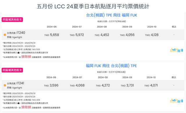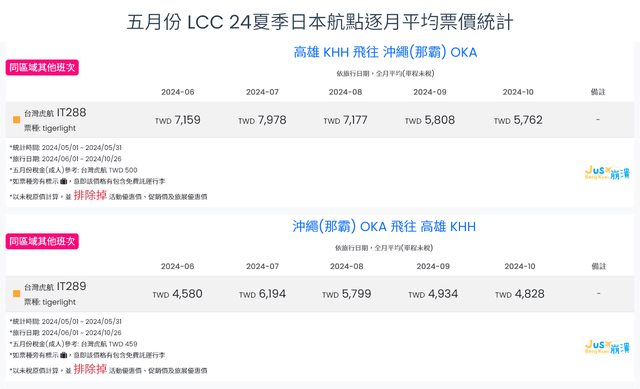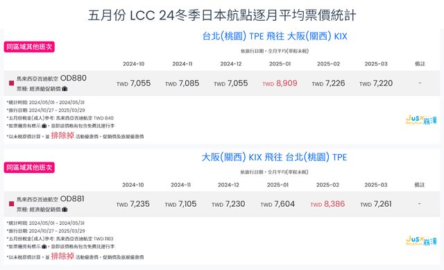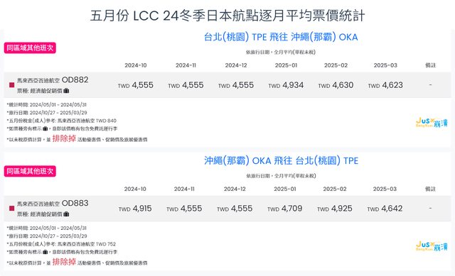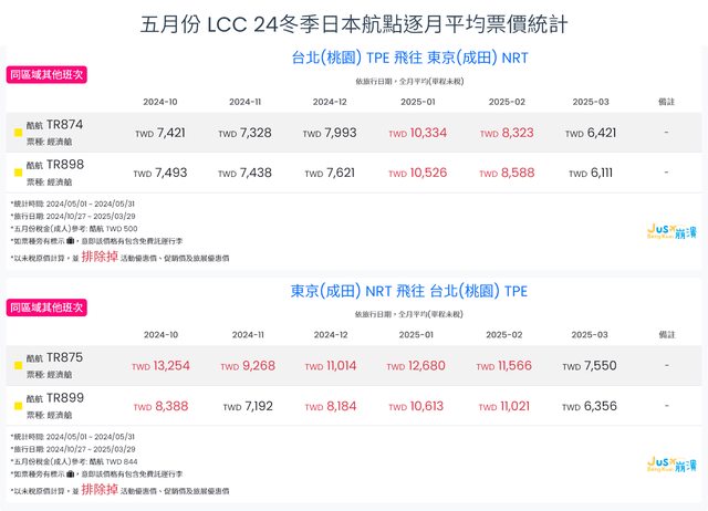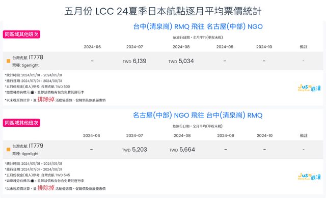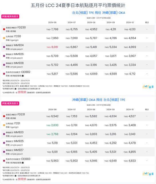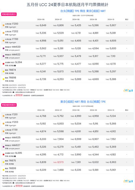 標題[分享] 5月LCC 24夏、24冬日本航點逐月均價統計