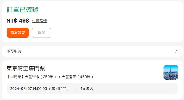 標題[讓售] 6/27東京晴空塔天望甲板+天望迴廊門票1