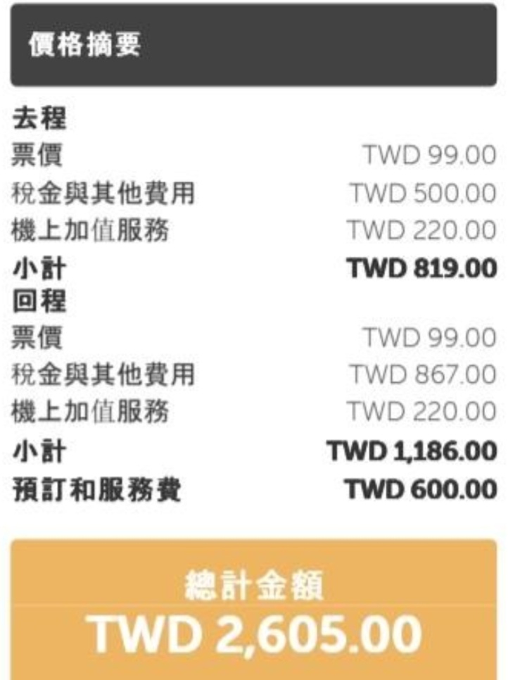 噓 JasonC1985 : 不收燃油附加費 但我收訂票服務費喔 06/04 16:33