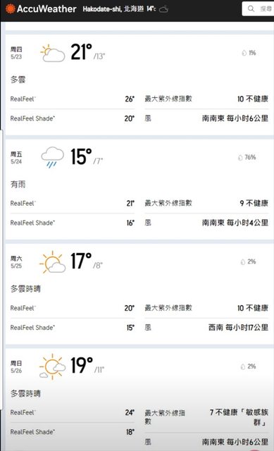 另外,行前看天氣預報,Day2 不管怎麼看,降雨機率都很高