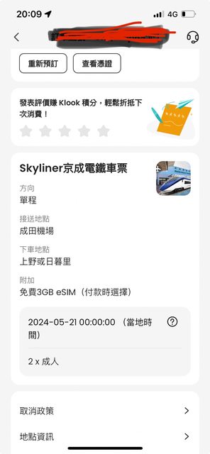 1. 讓售品項:東京成田上野來回skyliner 2組