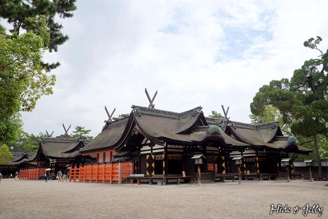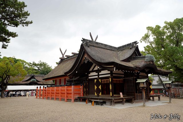 本殿的建築樣式叫做「住吉造」,被認為類似於飛鳥時代(592-710)為日本天皇登基儀