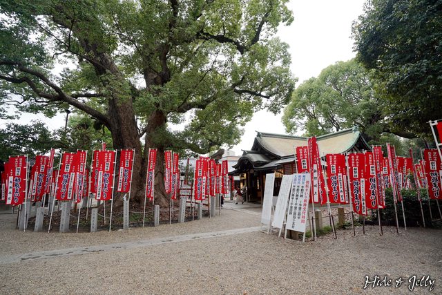 「楠珺社」顧名思義就是有一棵楠樹的神木,神木與神社的周遭插滿了信徒奉獻的旗幟,