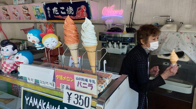 b.搭道南漁火鐵道,到木古內站踩點+買東西+吃霜淇淋等,再搭回來