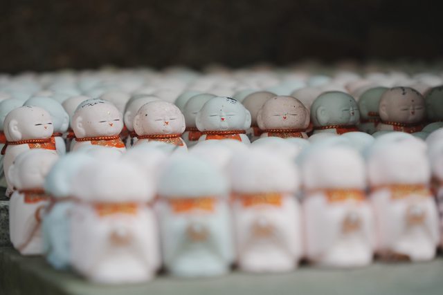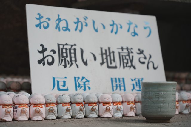 過了文學之路,進入到千光寺境內,在玉之岩下方擺著很多地藏