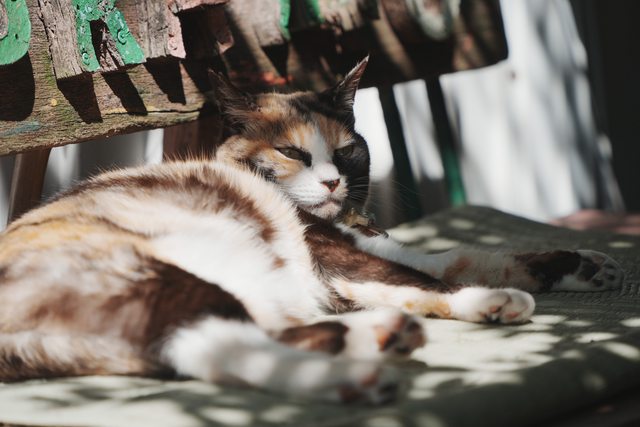 房屋旁的椅子上,也躺了一隻融入背景的傢伙