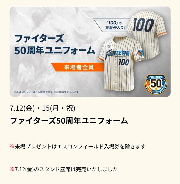 1. 讓售品項:7/15火腿隊主場50周年主題日vs樂天金鷲內野票*2