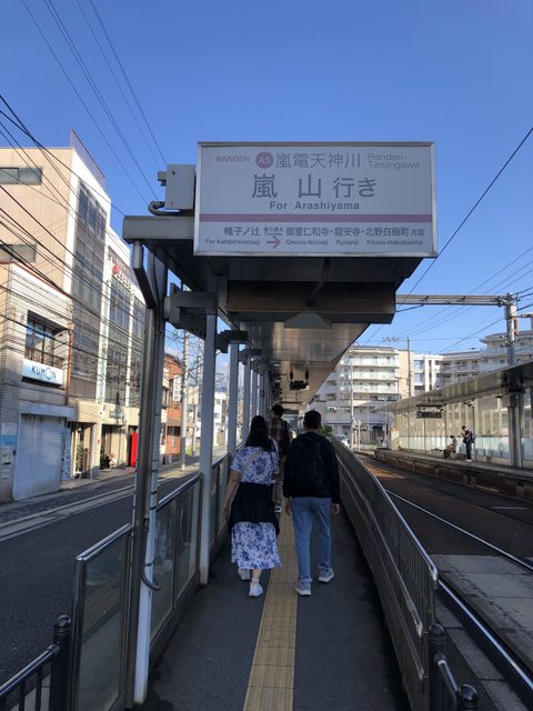 從旅館走路往烏丸御池站 搭 東西線 往 太秦天神川 搭嵐電前往嵐山