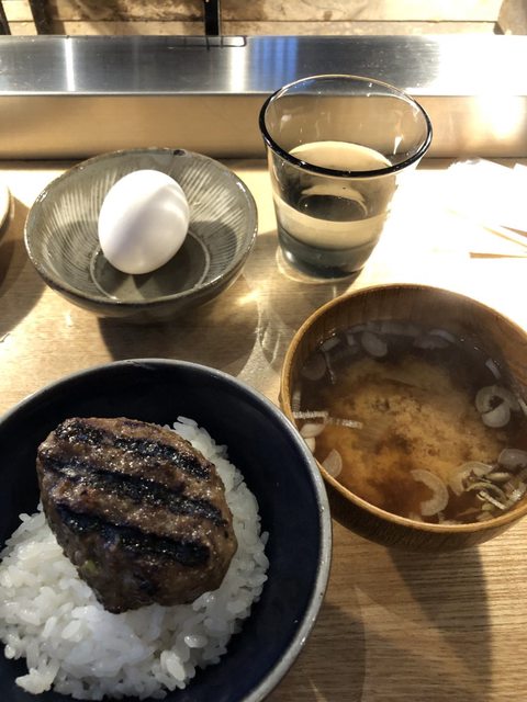 回到挽肉與米啦 3個漢堡肉+一個蛋 湯飯能續 但我就吃這樣而已 烤肉的店員會根據吃的速度來上菜