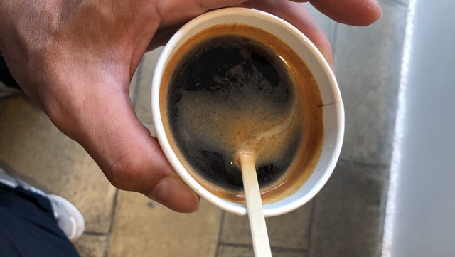 但我這樣做就把時間切碎了 0650一早往清水寺 0845挽肉排隊 因為預約11點的 等於我從清水寺往挽肉 因為要吃午餐 也不能先找東西吃 只好在附近閒晃 買杯℅ 這次喝美式 我覺得沒有到這麼值得排阿