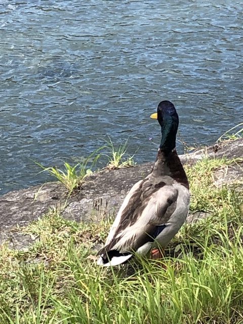 這邊很有意思的是 我在河邊走 水中有隻小鴨鴨嘎嘎嘎的叫 走累了在樹下休息 有隻母鴨也在嘎嘎嘎的叫 是走失了嗎