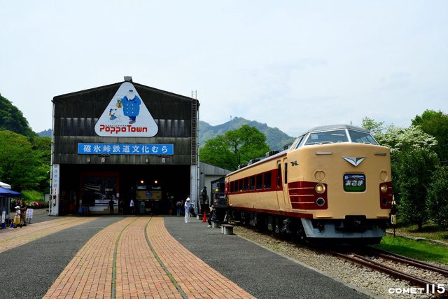 結在20多年前的樣貌。展示車輛主要是活躍於廢線前的EF63形電力機車、189系電車,部