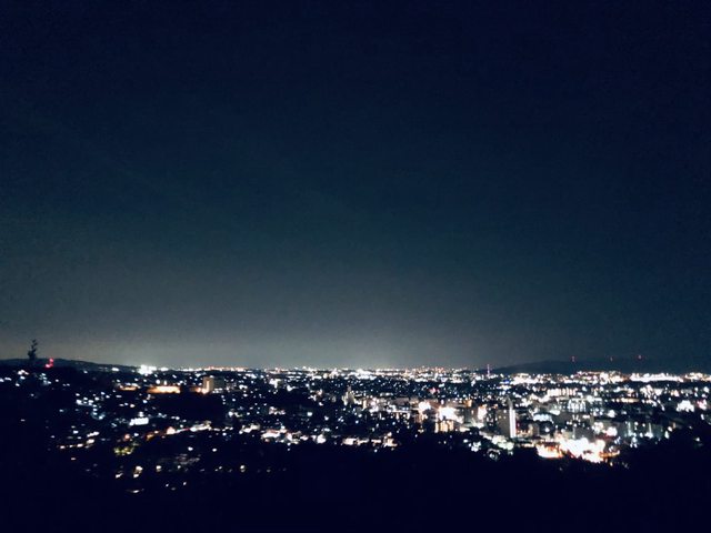 往山上一路上都是人 都是手電筒的光 山上比下午人還多 大概有30個人 啊~就是這個光