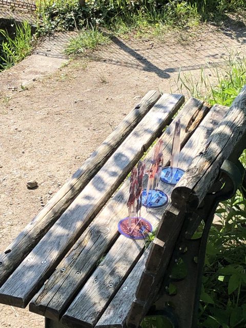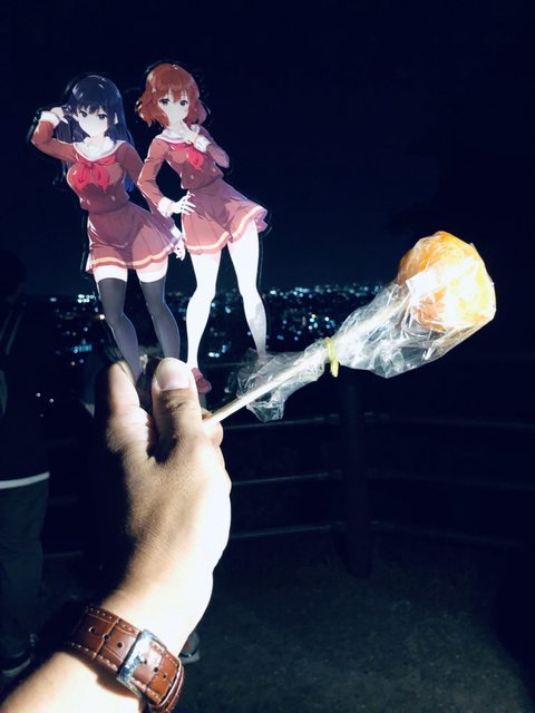 當我拿出立牌拍照時 旁邊有兩個有口音的妹子說 也是兩個上海人 「這好像是妳吃的那對CP」 「怎麼會有這個」 「這個是我畫的立牌」 其他閒聊我忘記了 我最後只記得她說 「那我可以跟你買嗎」 「我只剩這組了 還不能給妳」 「好吧 謝謝」 最後我拿了名片給她們就離開了 因為我還沒研究過怎麼寄東西到對岸去 也有日本人在問我 等遊記寫完我再來看看 這真的是此行最大的遺憾之一耶 我只有帶了1本本子 1個高黃 2個夏優 3個傘霙 我其實夏優傘霙是還有庫存的 但我就只帶這麼多 如果我當時手上還有就直接給你啦 如果你看到這篇可以聯繫我 我會寄過去給你 接著往山下走啦