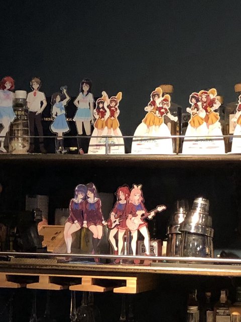 久美子 很辣 烈 麗奈 不遑多讓 喝完兩杯有點茫 回頭寫遊記時 真的有點後悔當時怕喝醉沒點黑江真由的酒來喝 這時被隔壁的人搭話 原來是台灣人 這樣就沒有語言問題了 他問我立牌的事 我說這我畫的 問有沒有在賣 那就要等回台灣我再來開賣場了 因為之前賣完我都懶得補貨上架 離開酒吧前把南中幫立牌給了酒吧老闆
