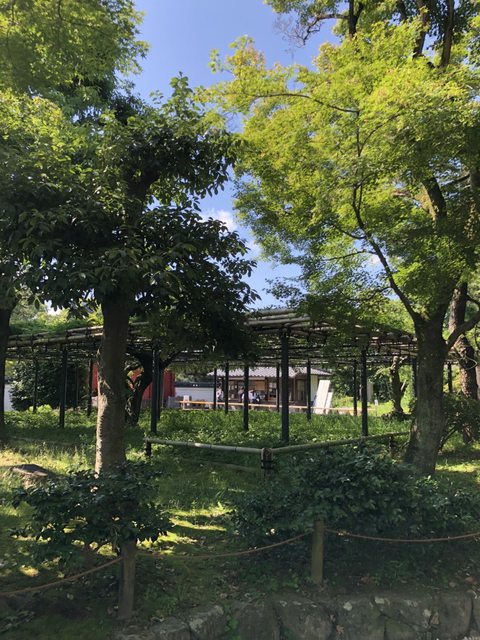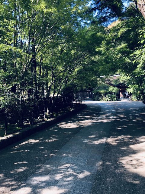 打開估狗才發現根本反方向 而且黃蘗公園也是山路往上 整個在太陽底下爬山 轉頭直接半跑步往另一邊衝 14:10分離開菟道 14:55到許波多神社 不過也因為這樣 讓入口處有很神祕的光影