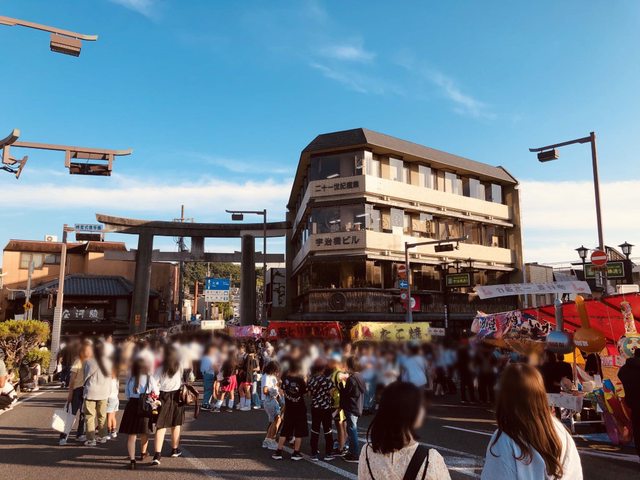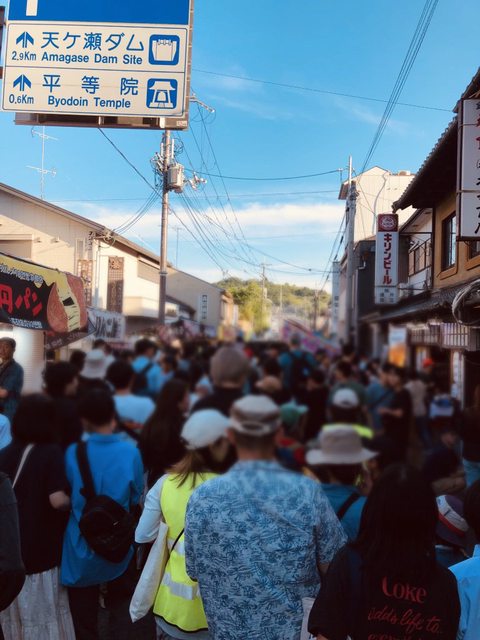 這時候已經1700了 終於把聖地巡禮點都走完了 下山來去參加縣祭吃飯啦 下山才發現 人超多的阿 我早上在宇治閒晃都沒這麼多人啊
