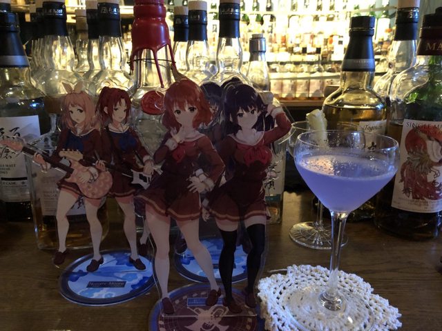 路上一路閒逛 不過畢竟台灣逛夜市看多了 大致上很多食物攤位是台灣也有的 看了就不會太有興趣 真的是來體驗氣氛的 買了一串烤牛肉 一份章魚燒 不過忘了拍照就是 原本還要繼續逛的 這時候群組的朋友到達宇治了 (他此行先住在宇治 非常方便 然後半夜參加神社的祭典) 就約在BAR kaguya碰面 2號自己來喝了一杯遇見愛的地方、霙、希美 那今天就喝久美子、麗奈