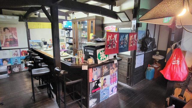 跟店主就尬聊了幾句沒多少交談,他好像都一直坐在吧檯看電視
