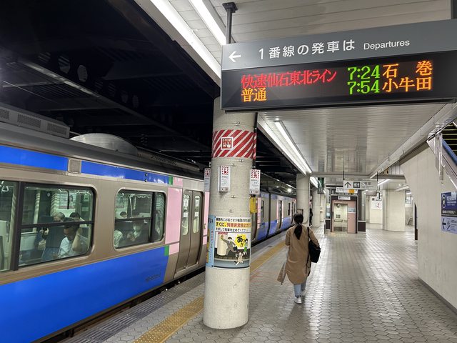 一早搭07:24的仙石東北ライン從仙台前往石巻。 從石巻車站走15分鐘到中央発着所,時間上是綽綽有餘的。 中央発着所在いしのまき元気いちば這個商店外面的階梯爬上去不遠處。