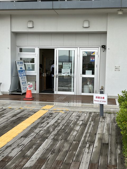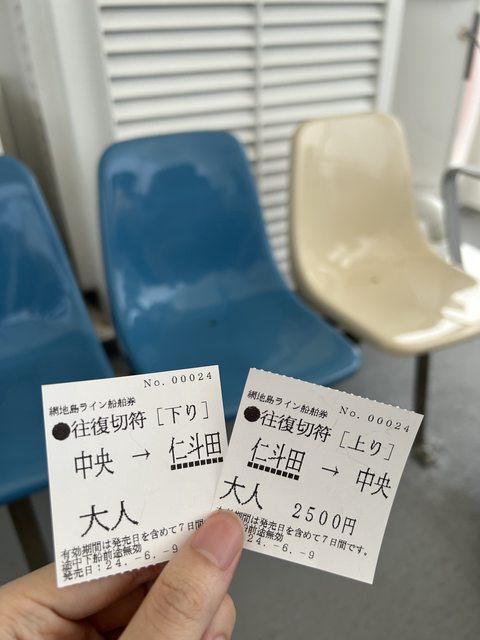 接著到網地島ライン中央発着所買票準備搭船,這邊只能使用現金。 不過實際上這趟他們是另外用車載乘客到門脇発着所統一上船。 很久沒搭船,所以想說坐看看上層。
