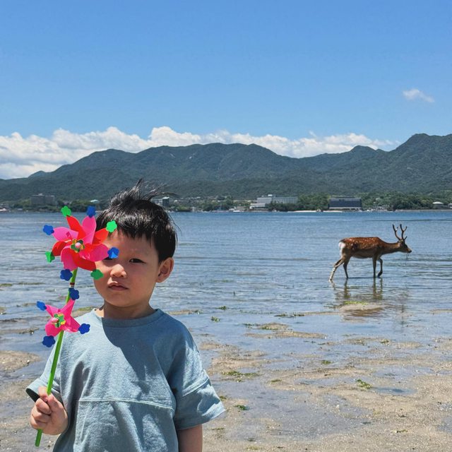 上了宮島,直覺很喜歡這個地方,覺得好悠哉(應該是因為還早 觀光客還沒上來),沿著海