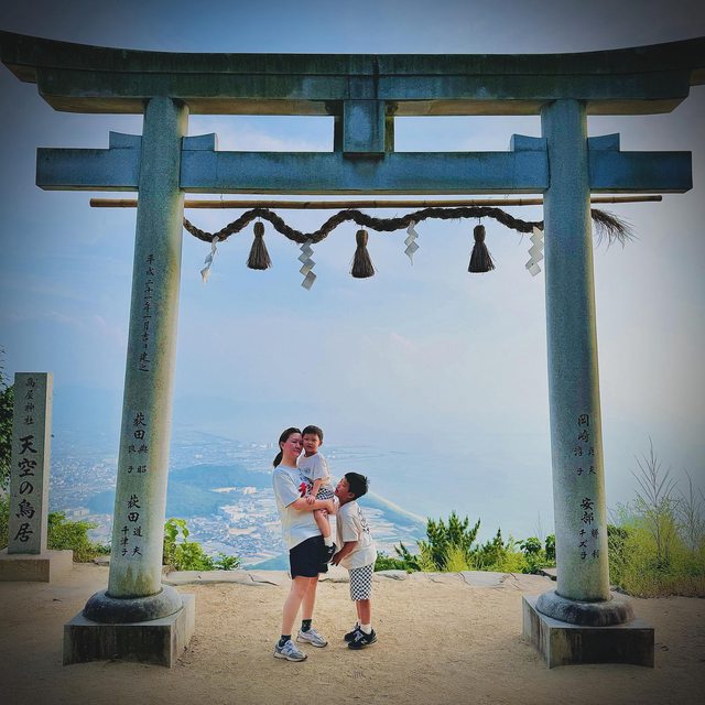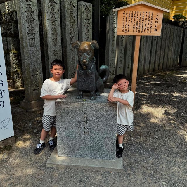吃完早餐後往琴平過去,要爬金刀比羅宮,帶著小孩扎扎實實的走了785階買了金色御守再