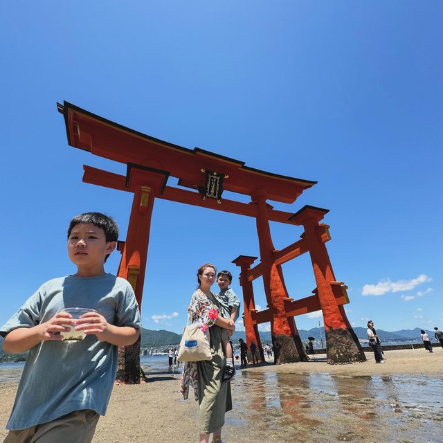 離開水族館差不多中午,就去退潮了的大鳥居旁,光踩水跟抓燒酒螺又去了一個半小時,還