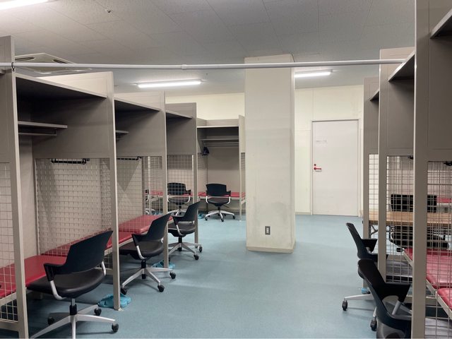 一軍的休息室使用照片看板呈現,有提醒不能拍照