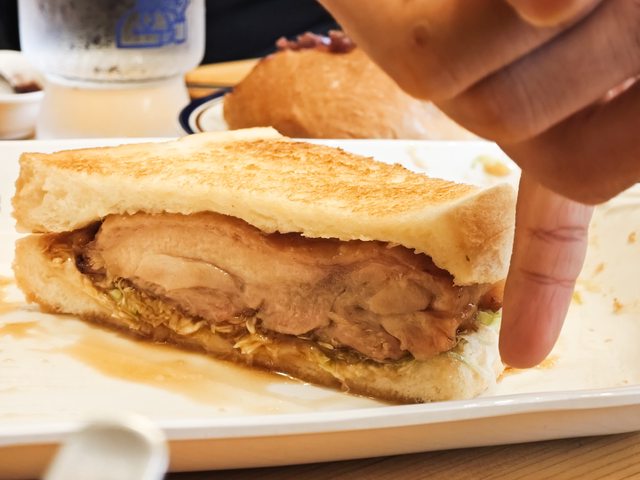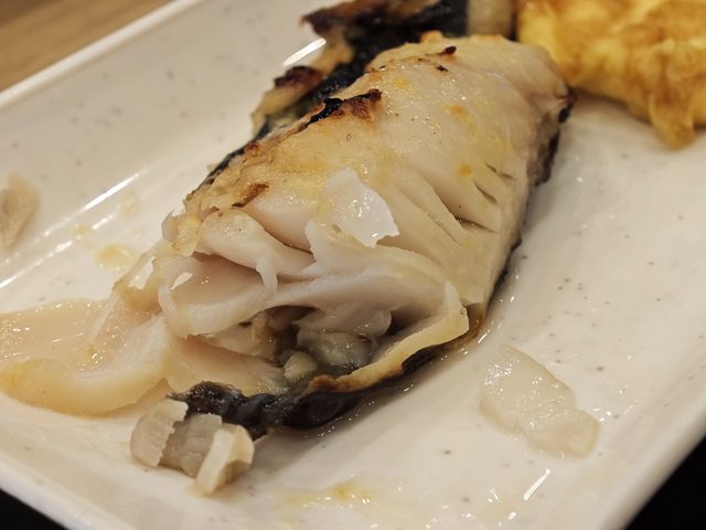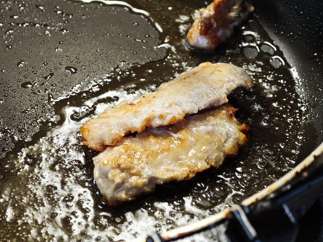 我說這肉是不是太彈牙,厚度還剛剛好煎到表面金黃色焦化就能沾醬吃