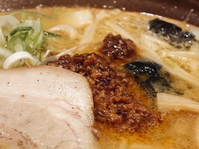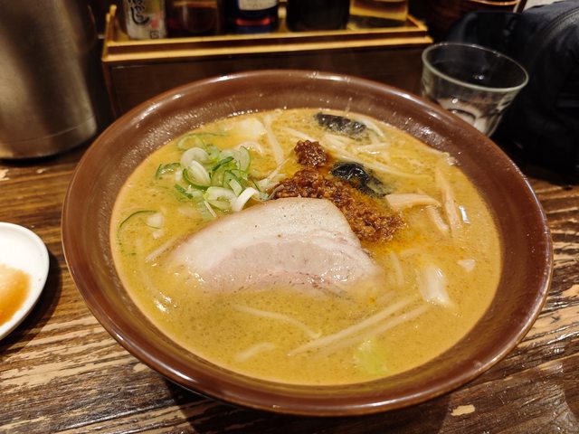 拉麵本身味道非常夠而且不是一般的叉燒而是更像台灣滷肉飯那樣的小塊肉