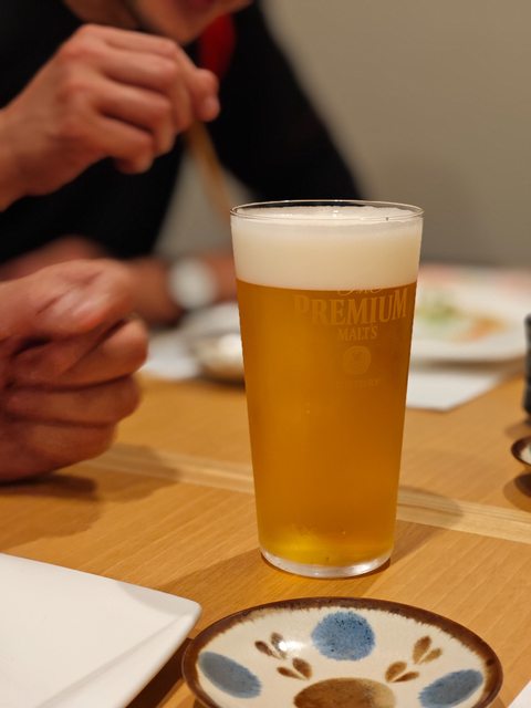 到日本吃飯就是最先一定要上一份生啤,我們點了北海道一定要喝的premium生啤