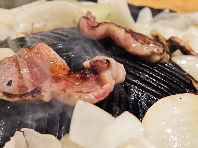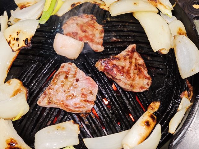 配上烤肉醬簡直是美味的暴力化身,旁邊的洋蔥也不知道是不是太新鮮