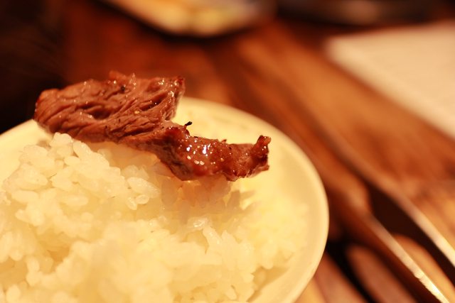 烤好的肉放在熱騰騰的白飯上,
