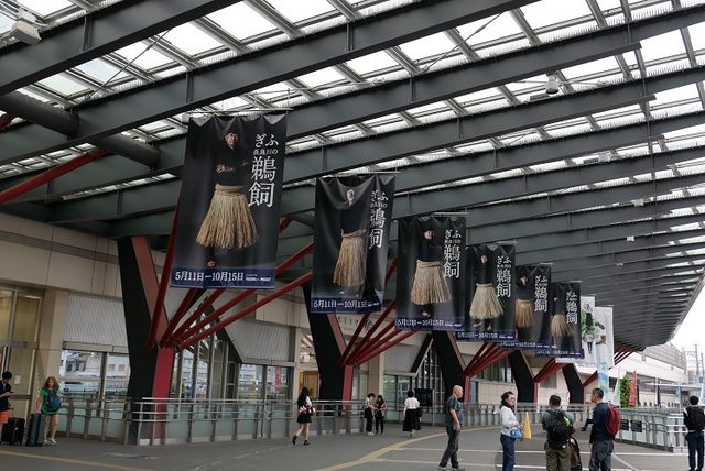 JR岐阜站外最醒目的地方,更是擺上6位鵜匠的巨幅廣告。