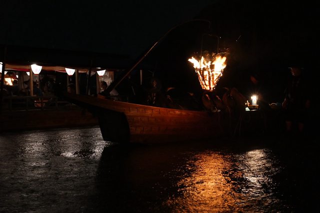可以在感受火把溫度的近距離,欣賞鵜匠吆喝鸕鶿潛水捕魚。